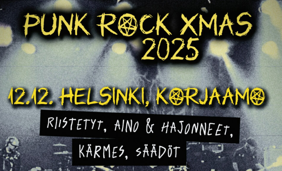 pe 12.12.2025 Vaunusali Liput: ennakkoon 27 € / ovelta 29,5 € Ovet 20:00 Säädöt 20:15 Kärmes 21:00 Aino & Hajonneet 22:00 Riistetyt 23:15 K18 28.11.: Punk Rock Xmas -kiertueelle artistimuutoksia! Valitettavasti Juustopäät joutuu perumaan juhlakeikkansa tämän vuoden Punk Rock Xmas...